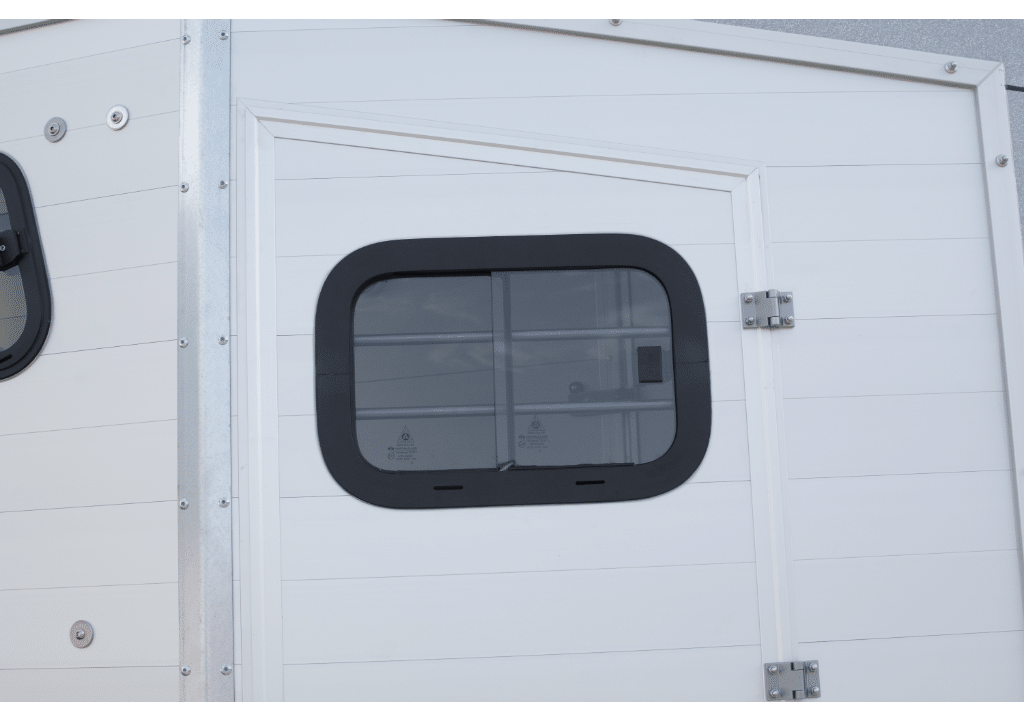 Instapdeuren rechts/links naar het paardengedeelte met schuifraam met rooster