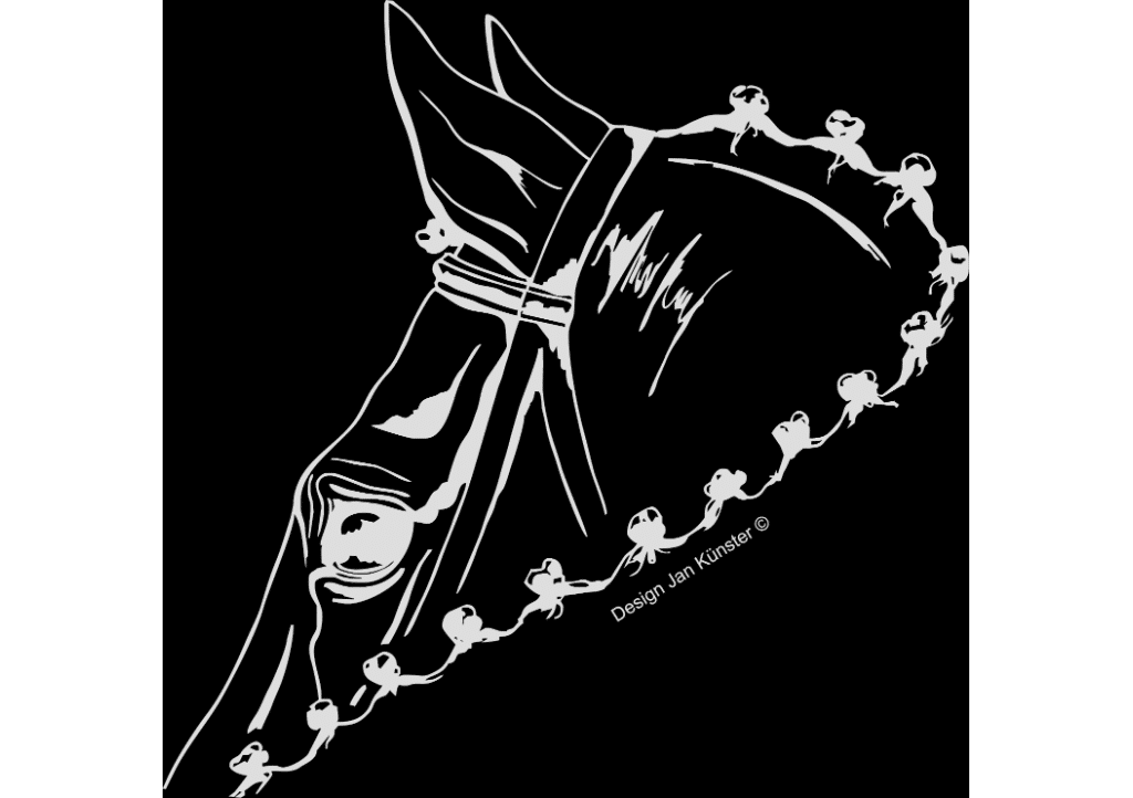 Motief paardenhoofd (532×247 mm) zilver incl. sierlijst